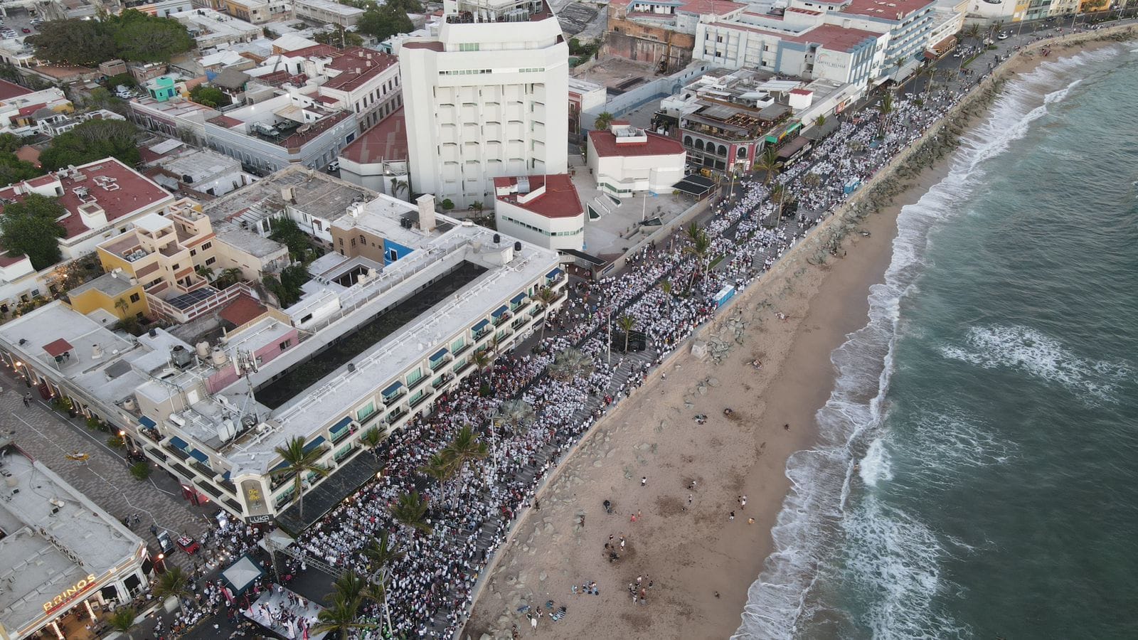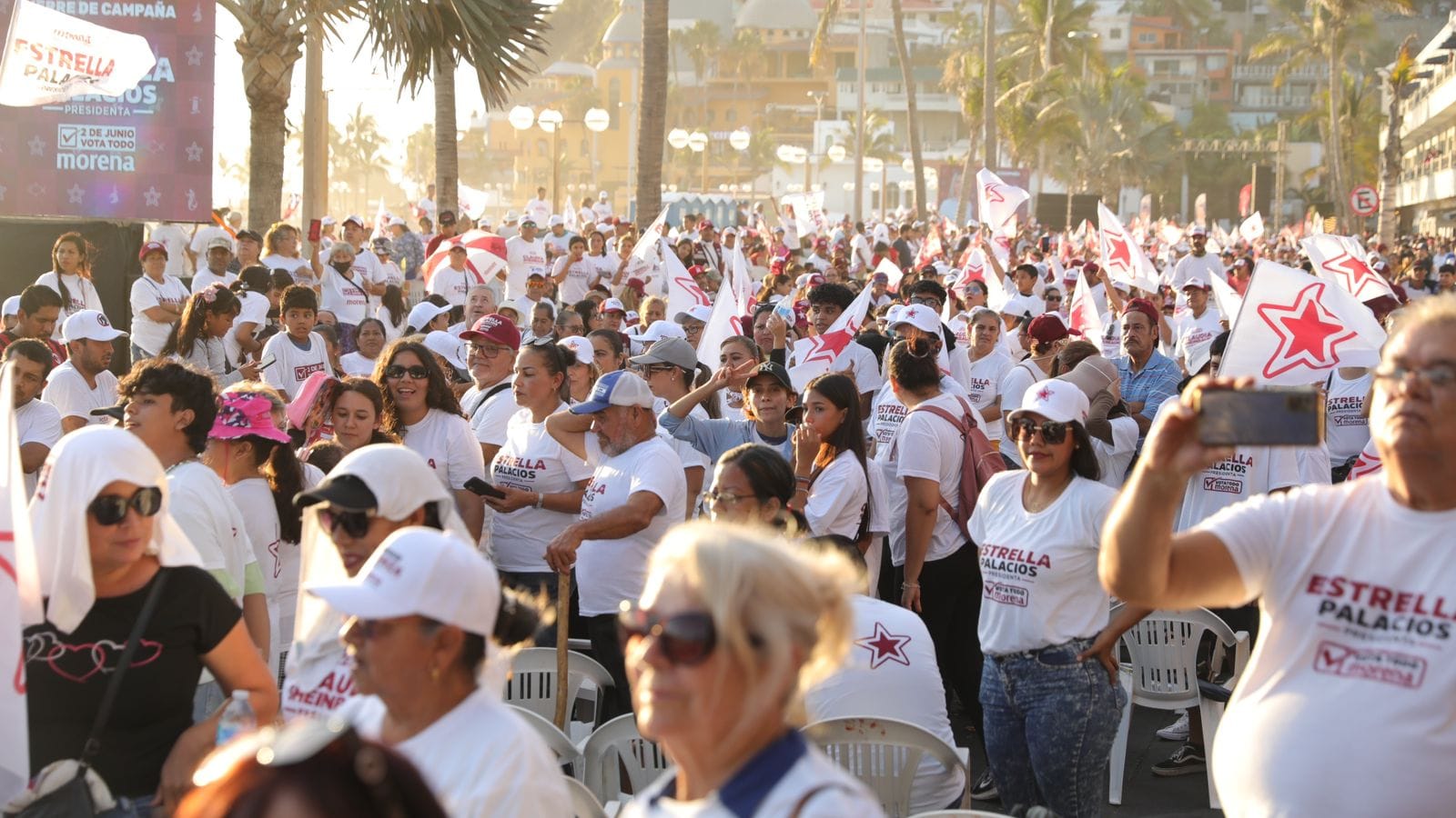 Acto de cierre de campaña de Estrella Palacios, candidata de MORENA a la alcaldía de Mazatlán. El evento multitudinario se efectuó en la zona de Olas Altas del puerto, donde la aspirante aseguró que el 02 de