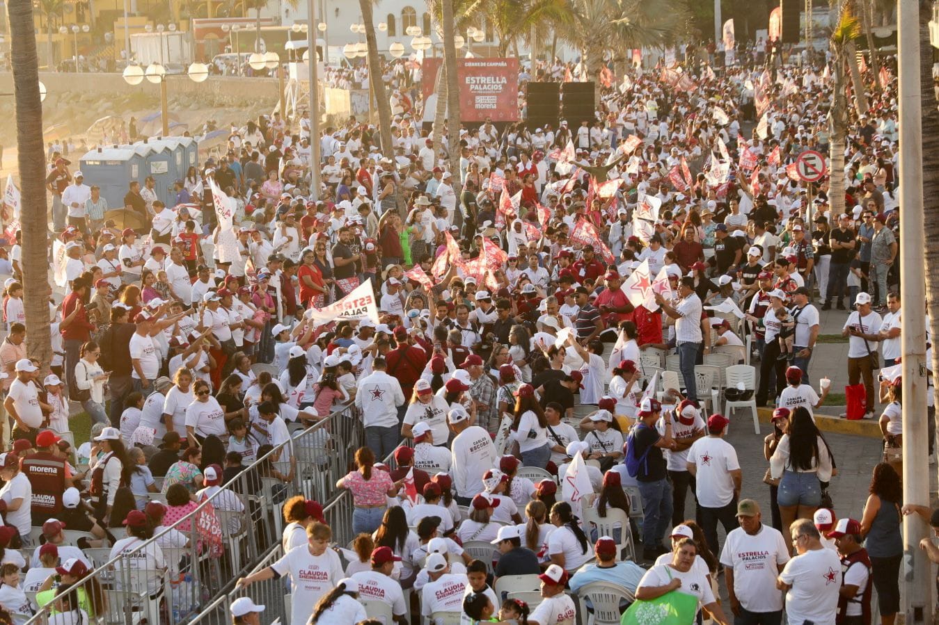 Acto de cierre de campaña de Estrella Palacios, candidata de MORENA a la alcaldía de Mazatlán. El evento multitudinario se efectuó en la zona de Olas Altas del puerto, donde la aspirante aseguró que el 02 de