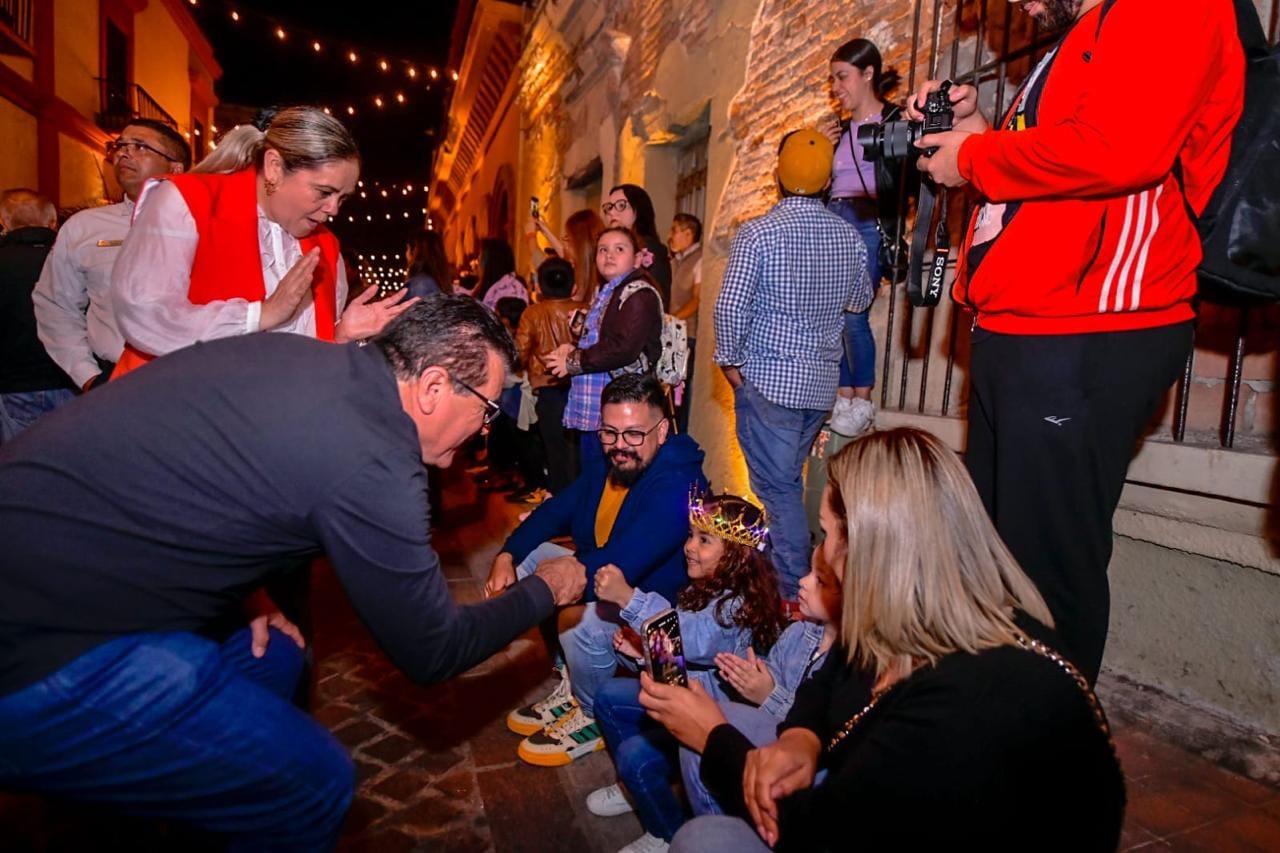 En la callejoneada aportó su energía y alegría la comparsa “Baile de la Corte” de Escénico Ferrer, dirigidos por el coreógrafo Cali Ferrer, cuyos integrantes fueron los ganadores del Concurso de Comparsas del Carnaval de Mazatlán 2024.