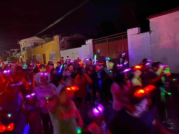 Más de 200 niños y adultos, realizaron un recorrido al ritmo de música y baile, en donde el toque especial fueron las luces de colores que iluminaban y daban alegría al trayecto, el cual arrancó en la antigua fábrica de textiles con salida a El Walamo y terminó en la Plazuela de Villa Unión.