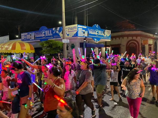 – Cientos de villauneses se unieron a una divertida caminata recreativa llena de luces de neón, polvos de colores, música y diversión para chicos y grandes durante la noche del viernes.