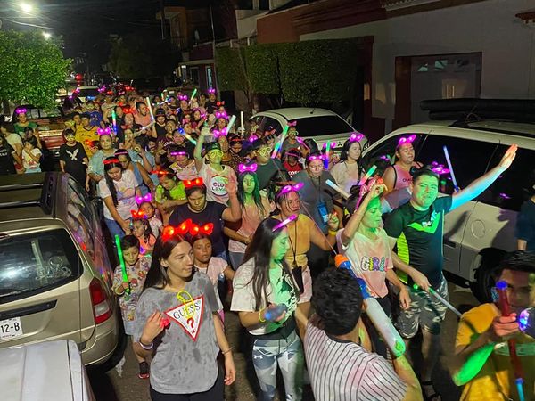Mazatlán, Sinaloa, a 29 de julio de 2023.- Cientos de villaunenses de todas las edades, se unieron para disfrutar de una noche llena de luces de neón, polvos de colores, música y diversión al participar en la tradicional “Caminata Luminosa”, con motivo de la celebración del 14 aniversario de la asociación Jóvenes Unidos por el Bien Social (JUBS).