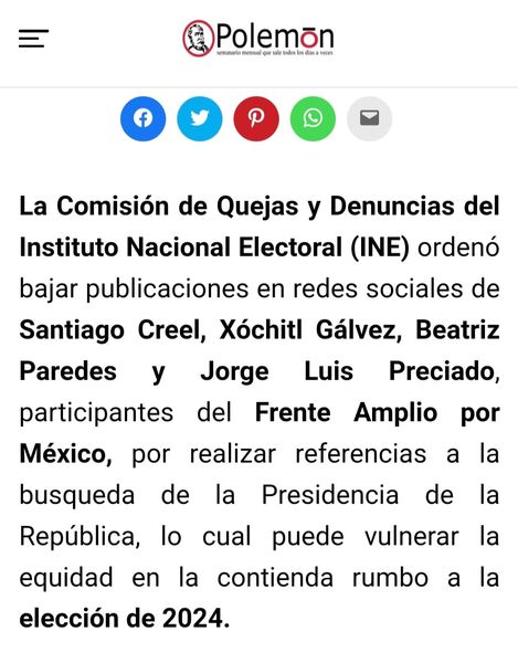 INE ORDENA A XOCHITL, CREEL, PAREDES Y PRECIADO ELIMINAR POST ELECTOREROS.
