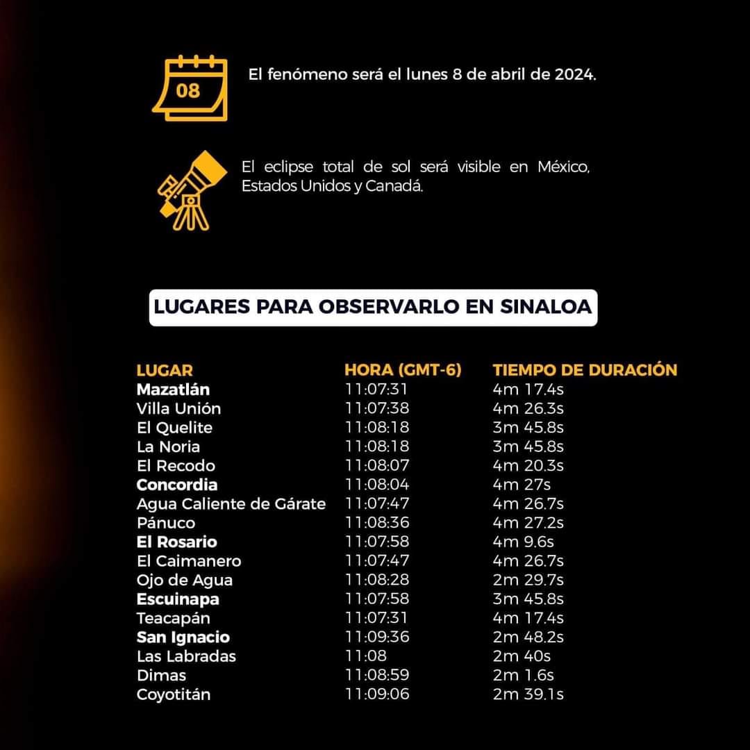 México será el mejor lugar del mundo para ver el eclipse solar total de abril 2024 Específicamente será Mazatlán el mejor lugar del planeta para poder disfrutar de uno de los eventos máximos de la astronomía. 🌓🌔🌕🌖🌗