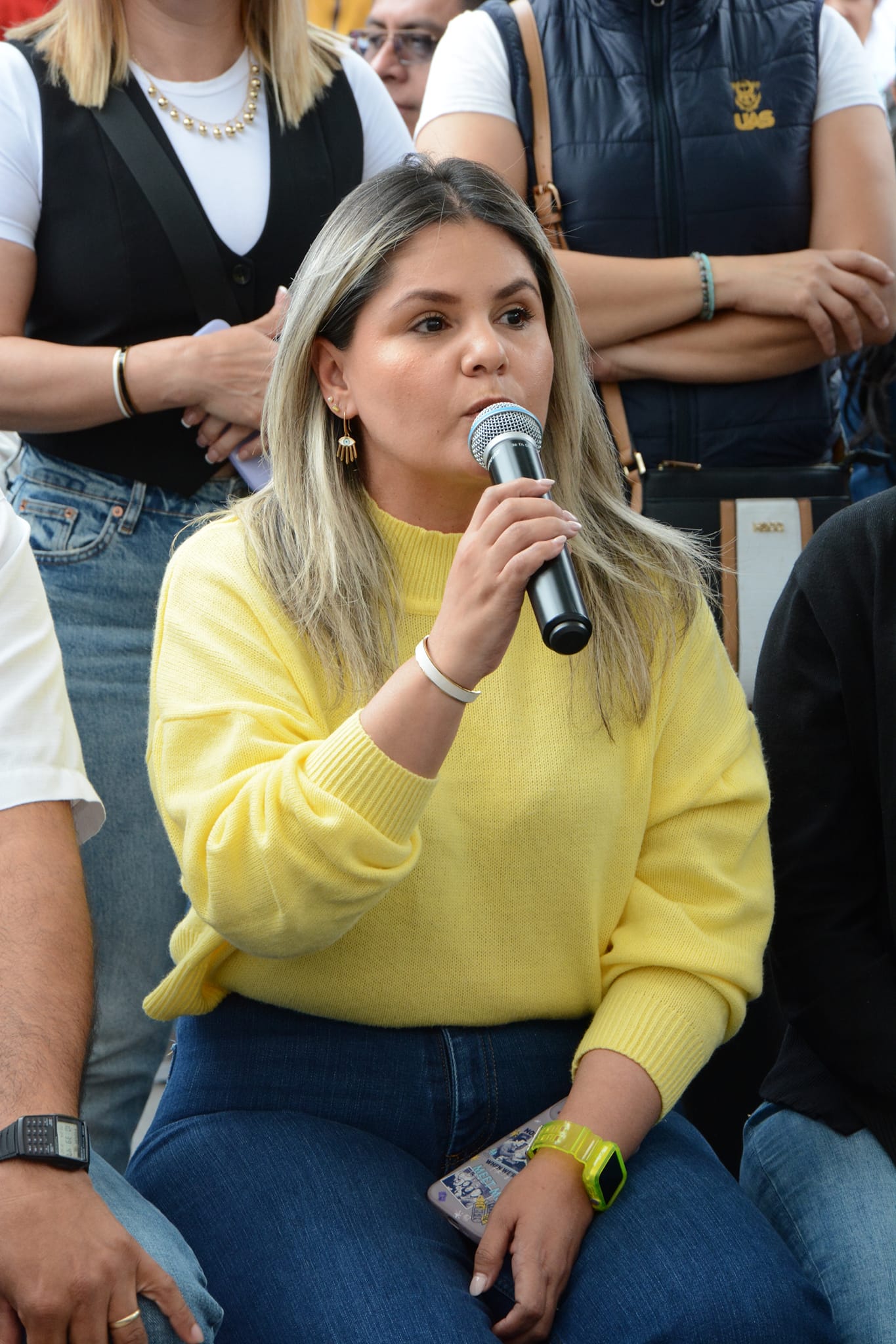 En representación de los miles de docentes e investigadores, Pamela Herrera Ríos, Subdirectora Administrativa de la Dirección General de Escuelas Preparatorias (DGEP), alzó la voz y declaró que pese a que ha sido un año muy complejo para los universitarios hay que seguir firmes, así como invitó al pueblo de Sinaloa a unirse en la defensa del alma mater de miles de sinaloenses.