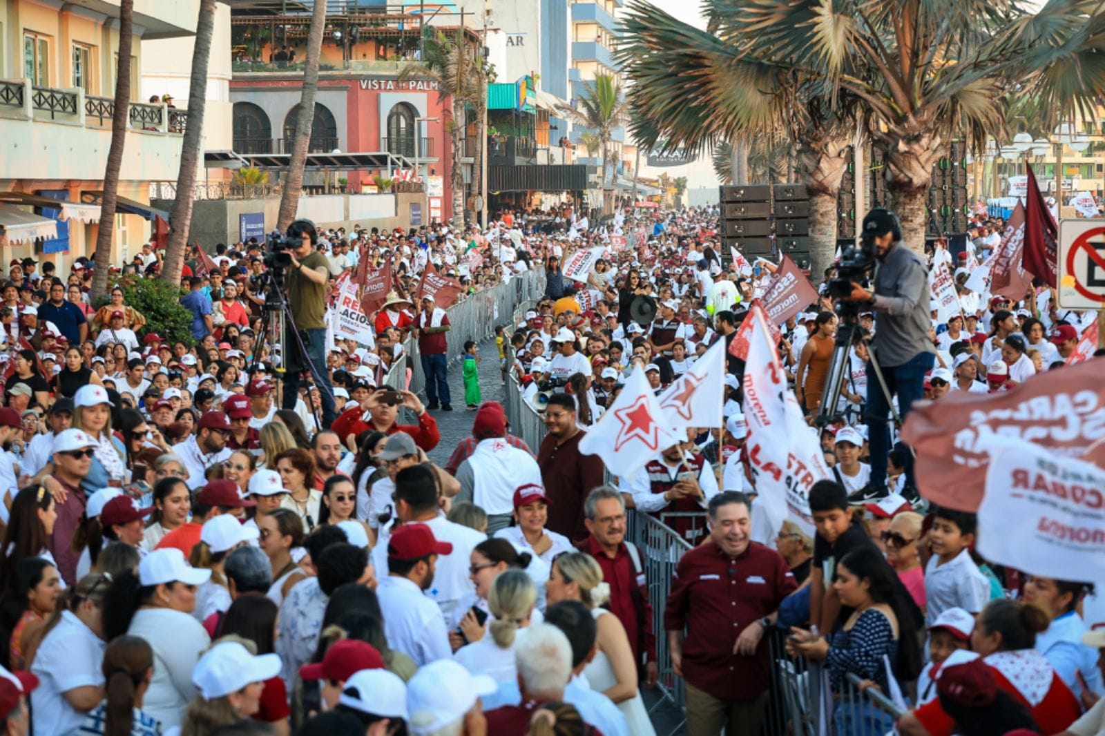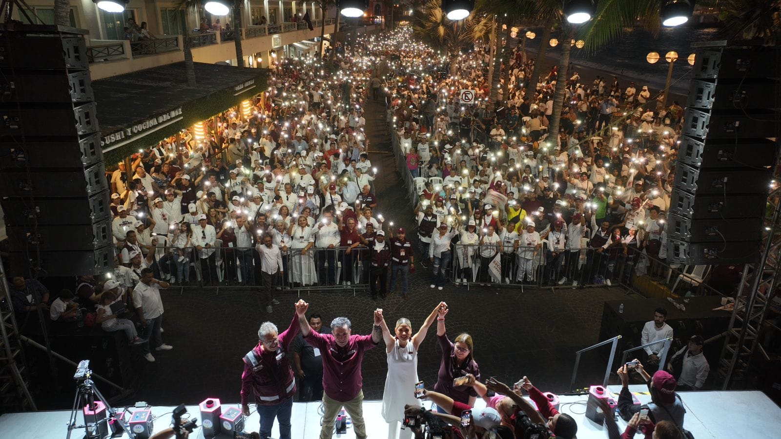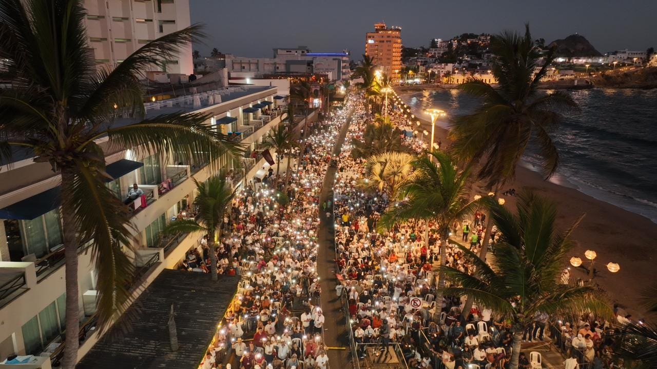 Estrella Palacios, la carta fuerte de Morena para continuar con el segundo piso de la Cuarta Transformación en Mazatlán cerró su campaña proselitista con un multitudinario mitin en Olas Olas Altas que logró convocar a más de 14 mil personas.