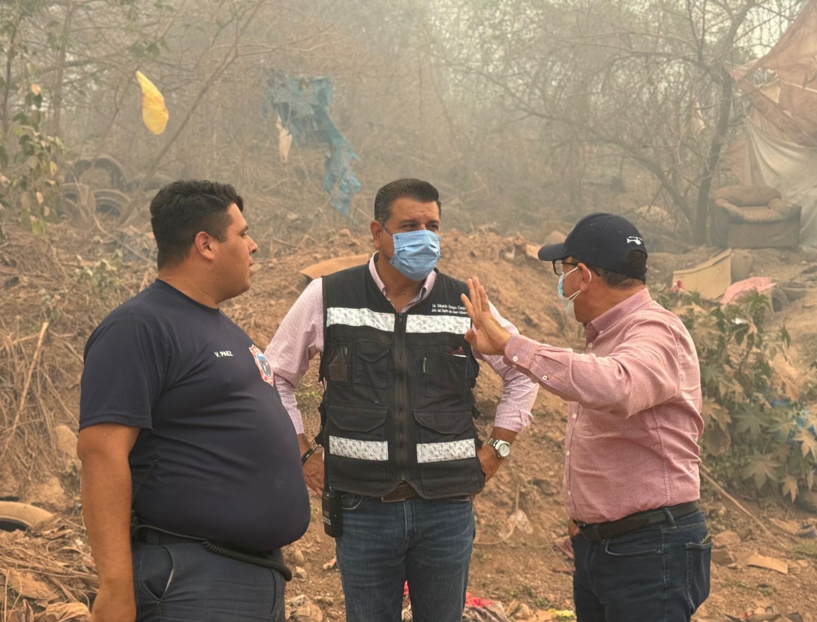 *Trabajan cuerpos de auxilio en control de incendio de basurón municipal.*