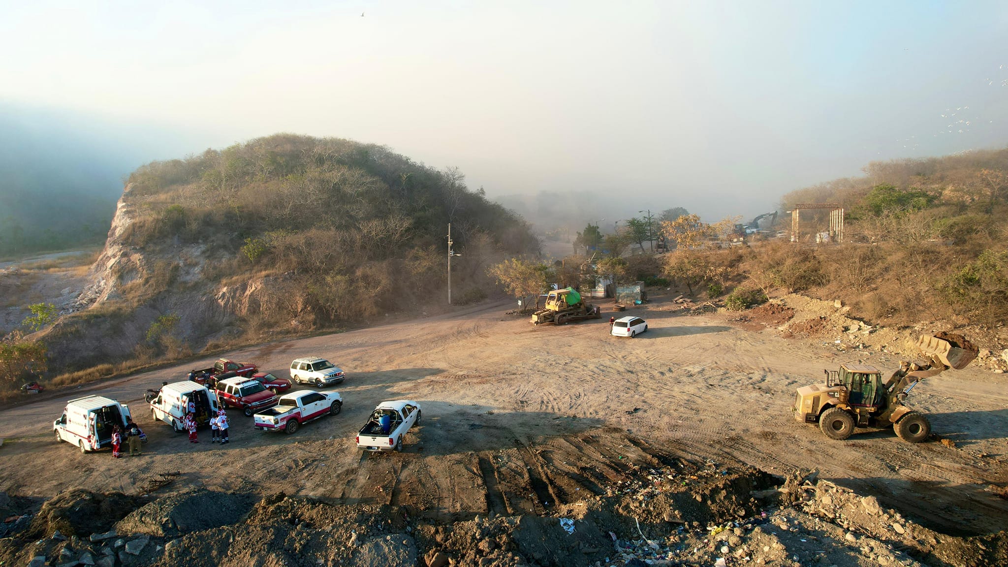 Mazatlán, Sinaloa, 22 de marzo de 2024.- Bomberos de la ciudad y elementos de Protección Civil con apoyo de pipas y maquinaria trabajan para controlar el incendio del basurón municipal iniciado la tarde de este viernes presuntamente por una explosión de baterías.