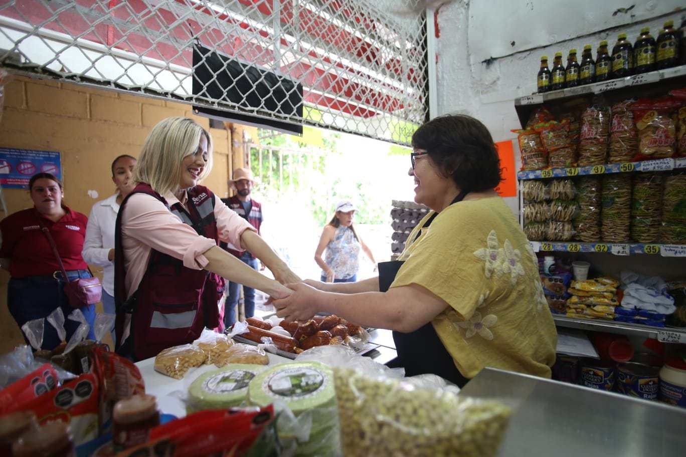 ¡Tú vas a ganar Estrella!, le aseguran a la candidata de Morena en el mercado “Juan Carrasco”.